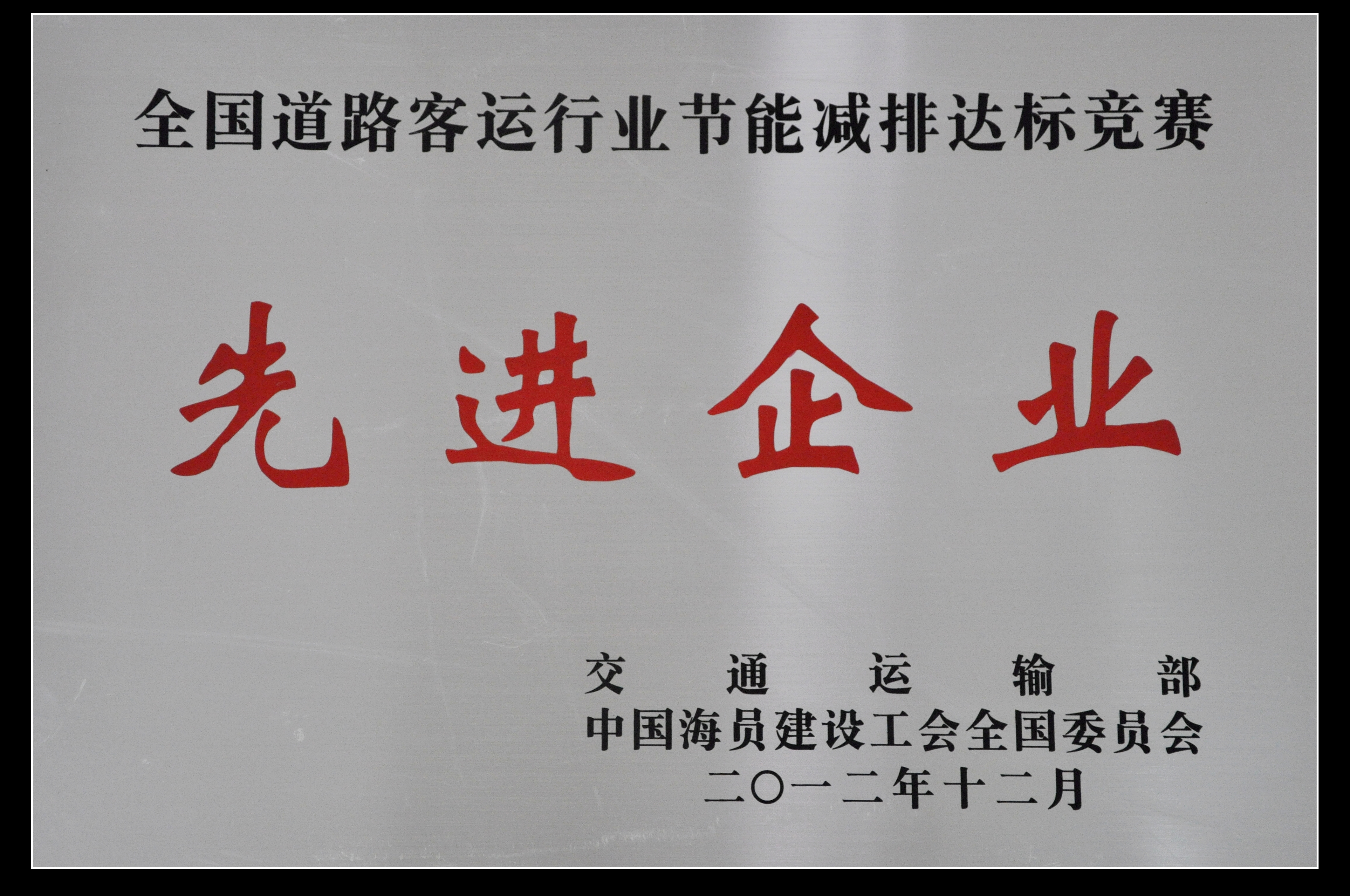 > 我司榮獲“全國道路客運行業(yè)節(jié)能減排達(dá)標(biāo)競賽先進(jìn)企業(yè)”稱號