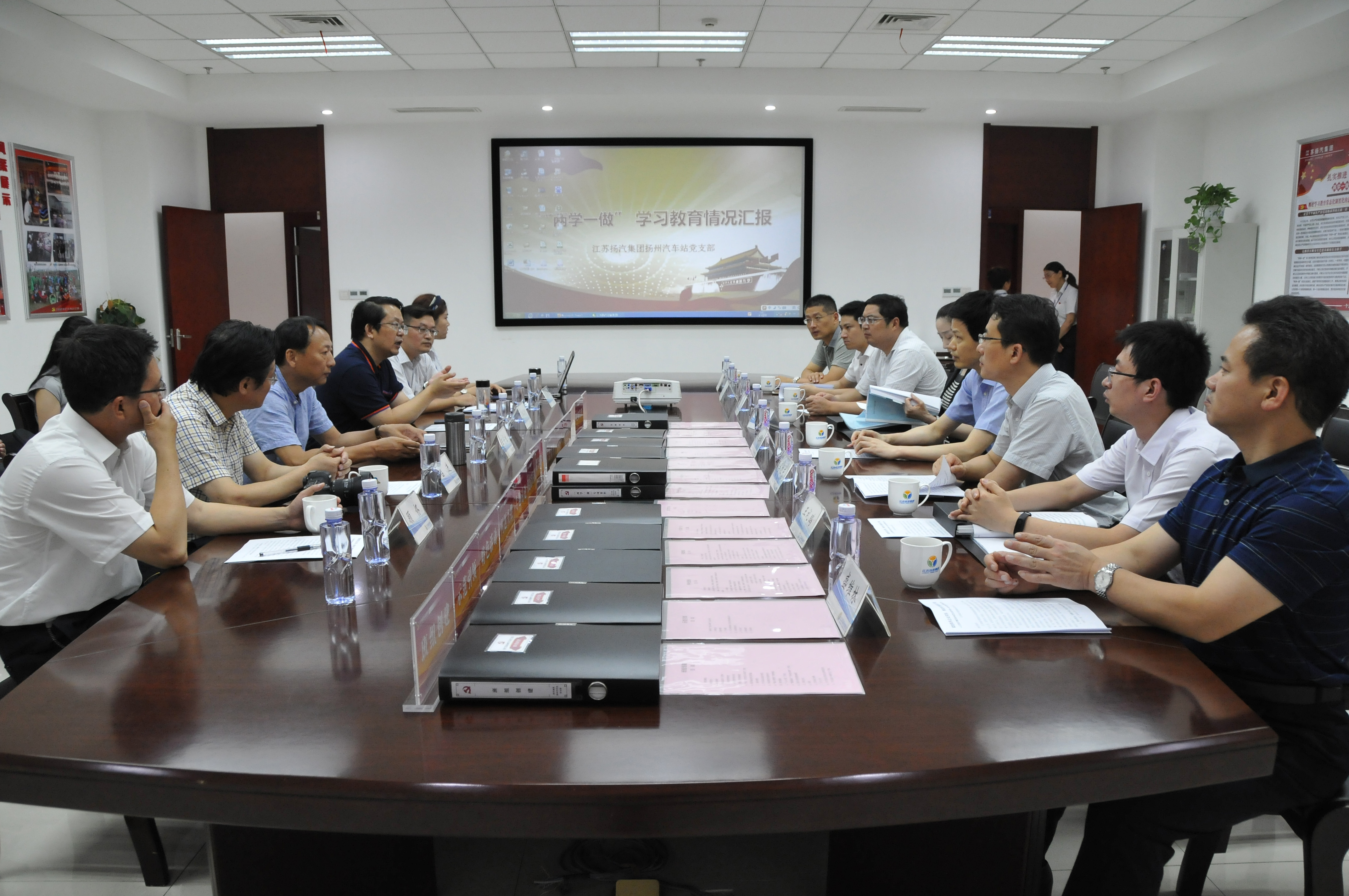 陸部長一行實地查看了揚州站黨支部的黨員活動室,并在活動室與揚州站黨支部的同志進行了座談。揚州站黨支部書記凌國軍,向督察組匯報了揚州站黨支部在“兩學一做”推進過程中,如何圍繞企業(yè)轉型升級開展黨建工作的體會和成績。督查組還認真查看了支部工作臺賬資料。督察組表示,揚州站黨支部在“兩學一做”學習教育過程中,活動豐富、臺賬健全、效果明顯,看到基層支部能將“兩學一做”工作這樣抓實做細感到非常欣慰。