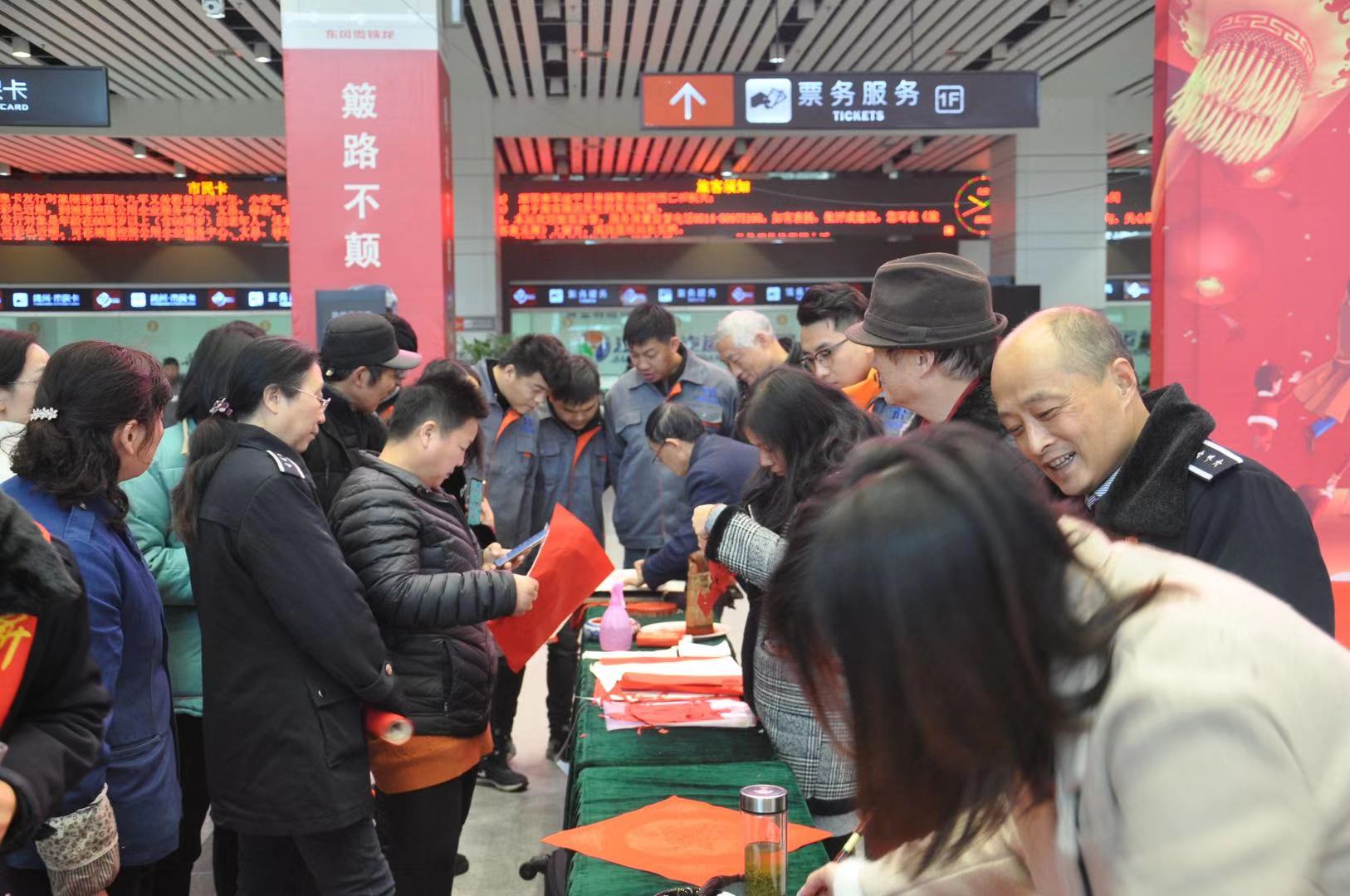 活動(dòng)現(xiàn)場(chǎng),揚(yáng)州市書(shū)法協(xié)會(huì)、剪紙協(xié)會(huì)、揚(yáng)州汽車站的志愿者和旅客們進(jìn)行了書(shū)法、剪紙創(chuàng)作送祝福的互動(dòng),在這寒冷的冬季,為歸鄉(xiāng)的旅客送去溫馨的祝福,讓旅客“溫暖相伴·幸;丶”。