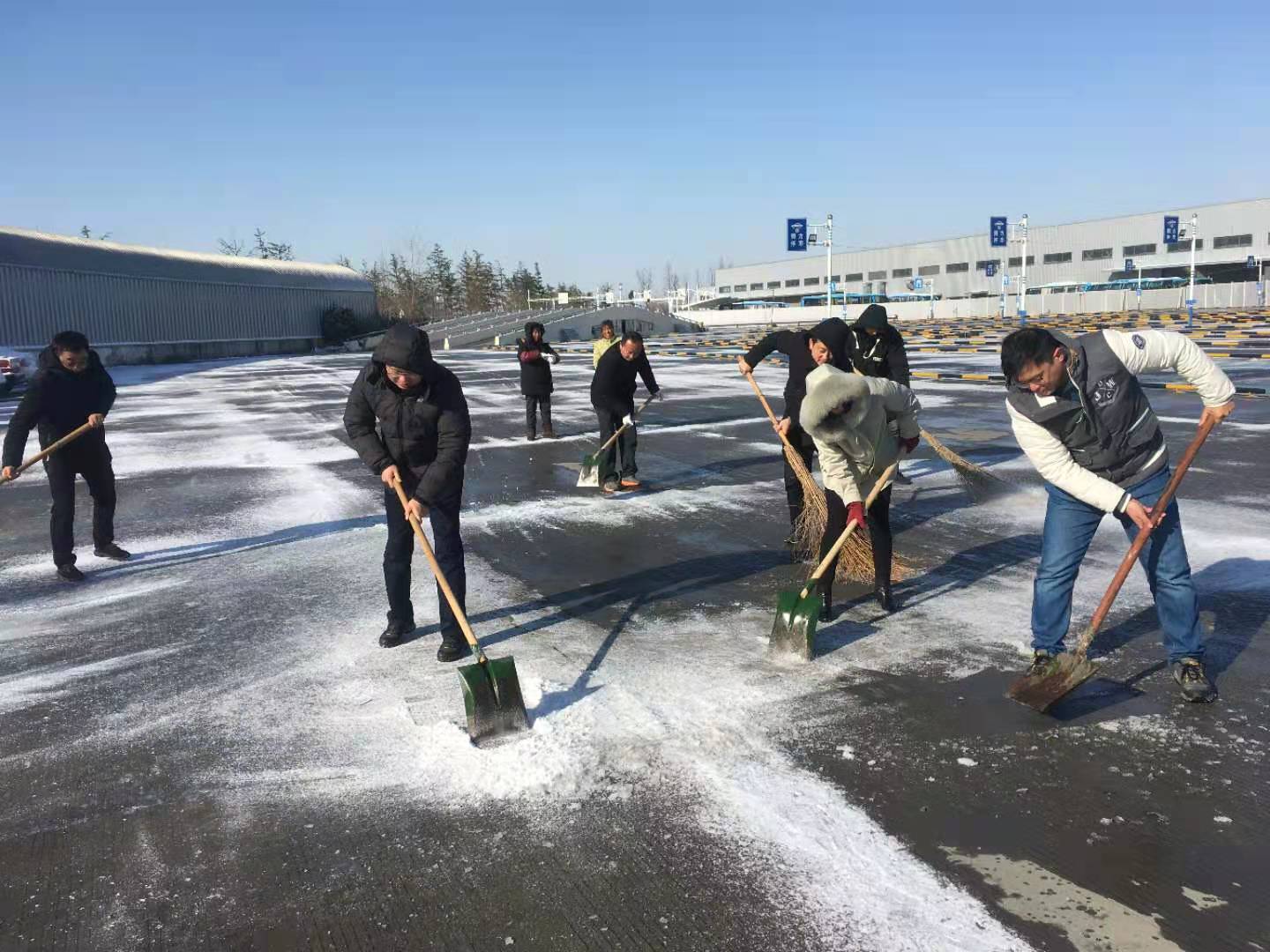 12月30日早上各黨支部積極響應(yīng)集團黨委號召,組織黨員干部、管理人員協(xié)助車站清理積雪,在站前廣場、發(fā)車平臺,進出站口等重點部位,大家拿著掃把、草墊、鐵鍬、雪鏟,充分發(fā)揮團隊協(xié)作精神,干勁十足,一派熱火朝天景象,為班線開通做好后勤保障。