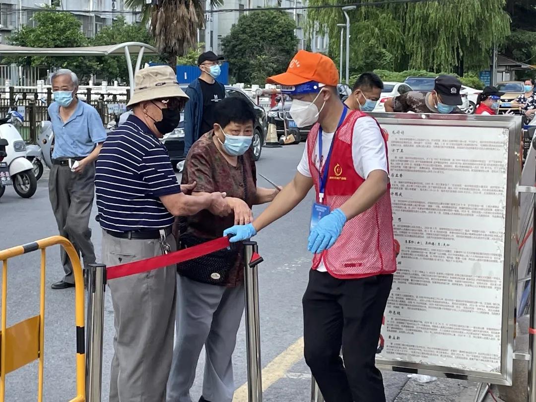 “您好,請按照地上黃線間隔一米有序排隊!”“請拿好身份證,根據指示完成信息錄入和核酸樣本采集!”在文匯街道花園社區(qū),前來進行核酸檢測的居民將原本空曠的中心廣場堵得水泄不通,醫(yī)護人員們忙得不可開交,在交通產業(yè)集團抗疫志愿隊伍的帶領下,來自揚汽集團處室的周波、陳思宇、吳思凡和其他志愿者一起,耐心地指揮著大家排隊遵守秩序。